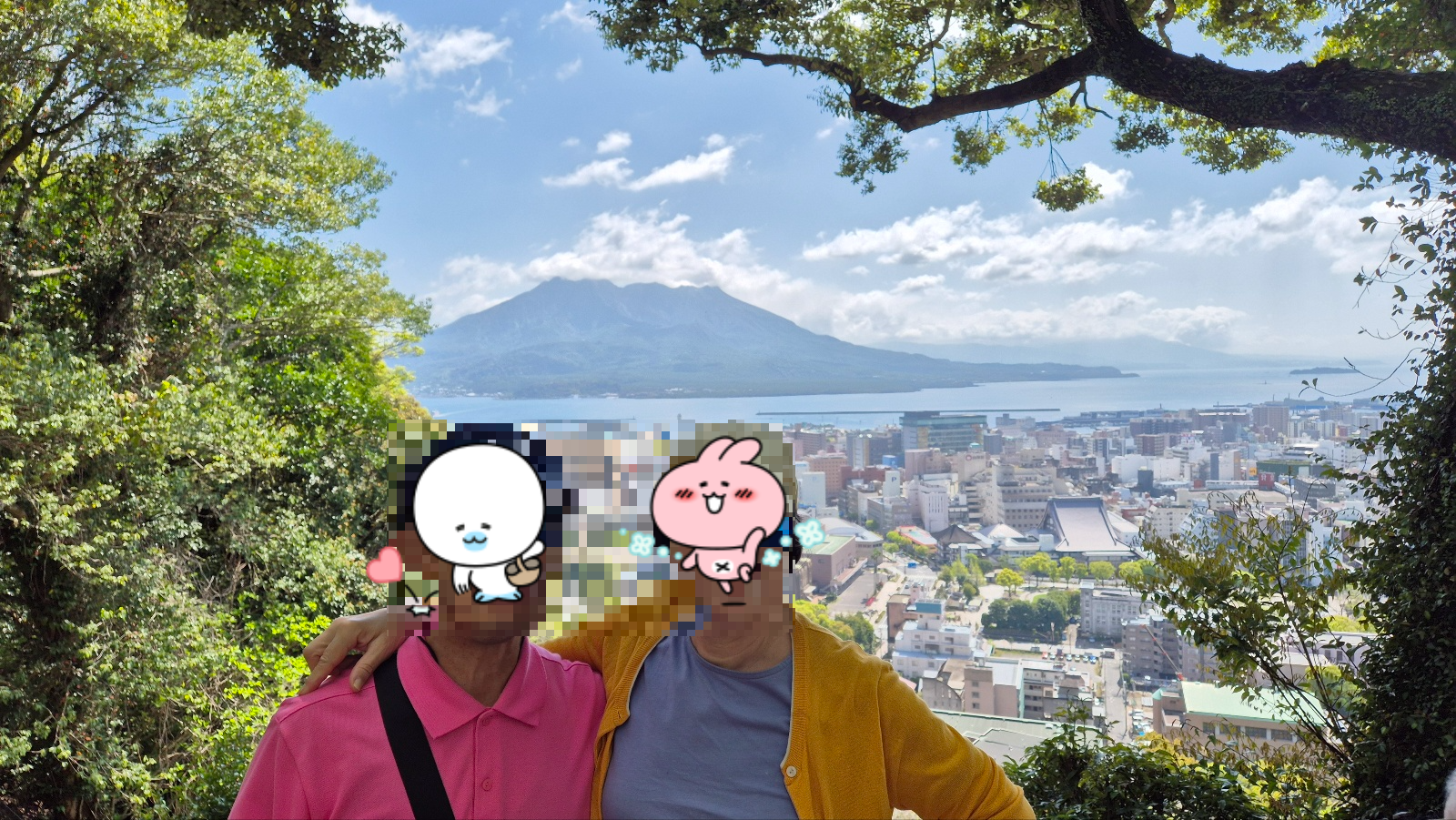 시내 전경과 바다 건너편의 사쿠라지마가 한눈에 들어온다.